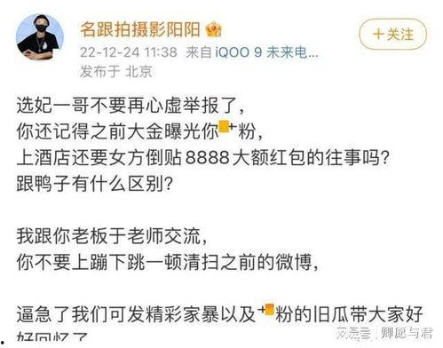 大少的这次爆料,引发了网友们的热烈讨论。有人认为,大少的行为是在揭露娱乐圈的黑暗面,为粉丝们提供了真实的信息。而也有人认为,大少的行为过于激进,可能会对被爆料的明星造成伤害。